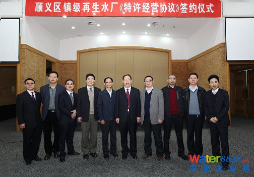 2013年4月2日,北京市首批引進(jìn)社會(huì)資本再生水廠建設(shè)運(yùn)營(yíng)項(xiàng)目在順義簽約,順義區(qū)水務(wù)局與北京碧水源科技股份有限公司、碧水源久安公司簽訂了順義區(qū)鎮(zhèn)級(jí)再生水廠《特許經(jīng)營(yíng)協(xié)議》,特許經(jīng)營(yíng)期為25年!短卦S經(jīng)營(yíng)協(xié)議》的簽訂標(biāo)志著北京市首批引進(jìn)社會(huì)資本建設(shè)和運(yùn)營(yíng)的8座鎮(zhèn)中心區(qū)再生水廠項(xiàng)目進(jìn)入實(shí)施階段。北京市水務(wù)局局長(zhǎng)金樹(shù)東,順義區(qū)領(lǐng)導(dǎo)王剛、盧映川,碧水源董事長(zhǎng)文劍平、總經(jīng)理戴日成等出席簽約儀式。