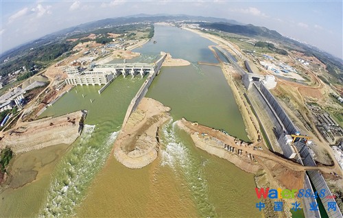 據(jù)介紹,老口樞紐工程共分兩期。一期工程主要施工內(nèi)容為左岸船閘和右岸一期四孔泄水閘壩、發(fā)電廠房和通道;二期工程施工內(nèi)容包括九孔泄水閘壩和左岸重力壩。一期工程自2012年3月開工至今,經(jīng)過兩年多的努力,左岸船閘主體土建工程、上下閘首檢修門及人字門等金屬結(jié)構(gòu)和機(jī)電設(shè)備安裝調(diào)試已全部完成;船閘已經(jīng)具備過水通航條件。右岸一期四孔泄水閘壩已于11月4日順利實(shí)現(xiàn)過水分流;發(fā)電廠房進(jìn)、尾水閘門已經(jīng)下閘擋水;發(fā)電廠房及一期閘壩段壩頂已實(shí)現(xiàn)通車;右岸70.5米以下水下部分土建施工已經(jīng)完成。