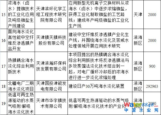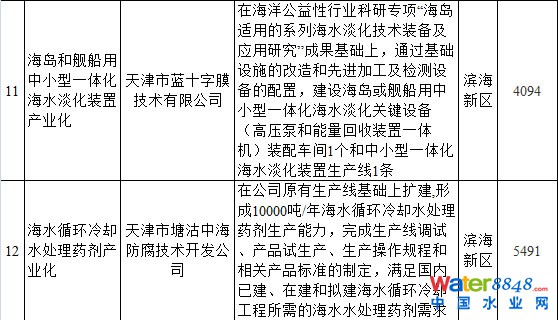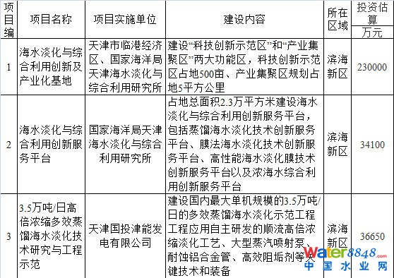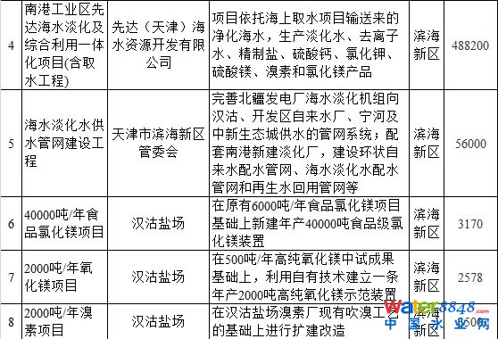 天津市海水資源綜合利用循環(huán)經(jīng)濟(jì)重點(diǎn)建設(shè)項(xiàng)目表