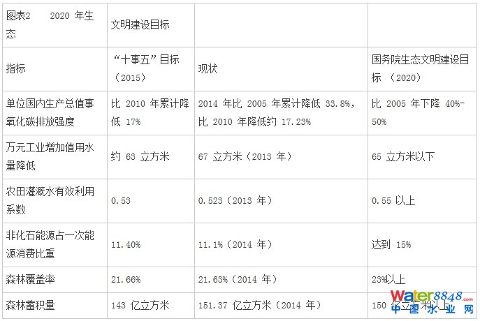 節(jié)能和環(huán)保是生態(tài)文明建設的兩個重要方面。2015年4月,國務院《關于加快推進生態(tài)文明建設的意見》提出生態(tài)文明建設的具體目標。一方面,要求資源的利用更加高效。對于部分資源利用指標,如單位GDP二氧化碳排放、萬元工業(yè)增加值用水量、非化石能源占一次能源消費比重等,均提出了高于“十二五”期間的標準。另一方面,要求生態(tài)環(huán)境質(zhì)量總體改善。包括主要污染物排放總量繼續(xù)減少,大氣環(huán)境質(zhì)量、重點流域和近岸海域水環(huán)境質(zhì)量改善,土壤環(huán)境質(zhì)量總體保持穩(wěn)定,環(huán)境風險得到有效控制,生物多樣性速度得到基本控制,全國生態(tài)系統(tǒng)穩(wěn)定性明顯增強等。