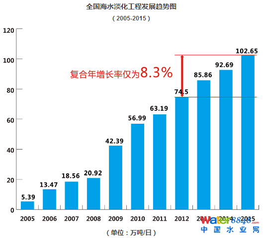 然而打后數(shù)年的發(fā)展卻遭到數(shù)據(jù)結(jié)結(jié)實實地“無情打臉”:2012至2015年,全國海淡工程規(guī)模復(fù)合年增長率僅為8.3%。發(fā)展意見中的一系列量化目標: