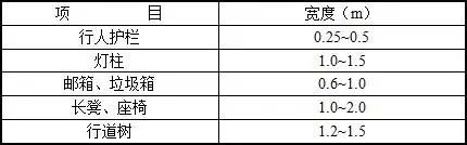 根據(jù)調(diào)查我國(guó)各城市設(shè)置桿柱的設(shè)施帶寬度多數(shù)為1.0m,有些城市為0.5m~1.5m,考慮有些桿線(xiàn)需設(shè)基礎(chǔ),寬度較大,設(shè)計(jì)時(shí)應(yīng)根據(jù)實(shí)際情況確定,并可與綠化帶結(jié)合設(shè)置。