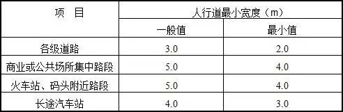 根據(jù)調(diào)查資料,我國(guó)城市道路中人行道寬度一般為2m~10m,商業(yè)街、火車(chē)站、長(zhǎng)途汽車(chē)站附近路段人流密度大,攜帶的東西多,因此應(yīng)比一般路段人行道寬。