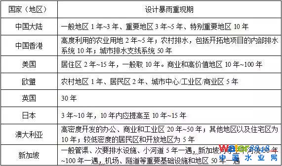 表3 我國(guó)當(dāng)前雨水管渠設(shè)計(jì)重現(xiàn)期與發(fā)達(dá)國(guó)家和地區(qū)的對(duì)比