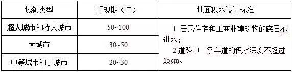 【條文說(shuō)明】城鎮(zhèn)內(nèi)澇防治的主要目的是將降雨期間的地面積水控制在可接受的范圍。鑒于我國(guó)還沒(méi)有專(zhuān)門(mén)針對(duì)內(nèi)澇防治的設(shè)計(jì)標(biāo)準(zhǔn),本規(guī)范表3.2.4B列出了內(nèi)澇防治設(shè)計(jì)重現(xiàn)期和積水深度標(biāo)準(zhǔn),,用以規(guī)范和指導(dǎo)內(nèi)澇防治設(shè)施的設(shè)計(jì)。