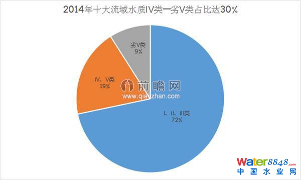 其三,我國水污染問題嚴(yán)重,2014年十大流域水質(zhì)IV類—劣V類累計占比達(dá)30%,接近三分之一。