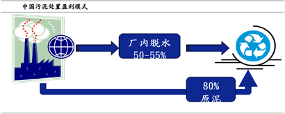 從盈利模式上看,和污水處理類似,污泥處理處置一般是分為BOT 和BOO 兩類模式。從處置過程來看,原先較為常見的是將污水廠80%含水率污泥直接運(yùn)至處置工廠,進(jìn)行下一步處置;目前越來越多的企業(yè)選擇在廠內(nèi)將80%的含水率污泥進(jìn)一步脫水至50-55%,再外運(yùn)進(jìn)行下一步處置。后者的好處明顯,即節(jié)約了運(yùn)輸費(fèi)用,對于污水企業(yè)來講節(jié)約了成本,對污泥處置企業(yè)講提高了毛利率。
