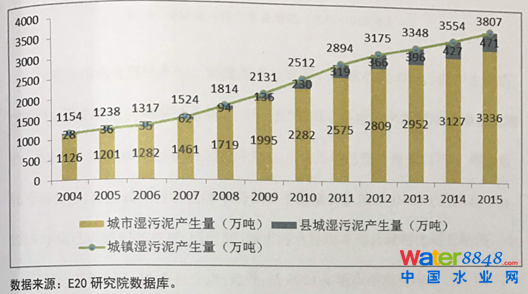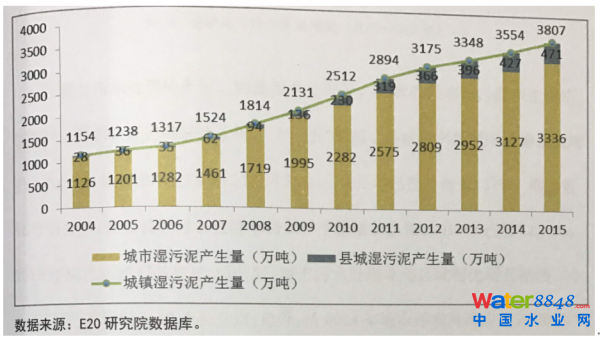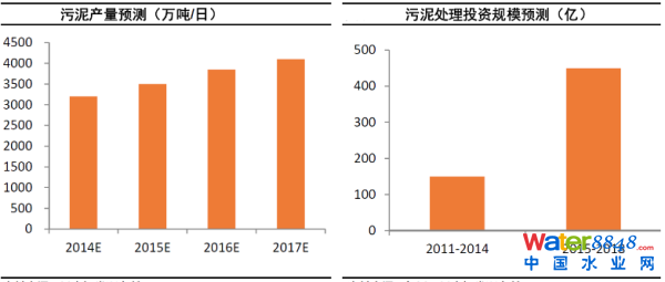 基于《十二五規(guī)劃》,預(yù)計(jì)到2015 年,全國污泥產(chǎn)量將超過3500 萬噸,并保持約8%左右的年化增速。期間新增污泥處理和處置設(shè)施518 萬噸(干泥)/年,折合投資347 億元,實(shí)際至少達(dá)500 億元。清大環(huán)境學(xué)院預(yù)測,2015 年全國全年城鎮(zhèn)污水處理廠污泥產(chǎn)量達(dá)3359 萬噸,即日產(chǎn)9.2 萬噸。
