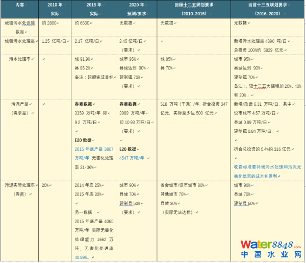 (2)目標(biāo)處理率從十二五城市污水處理率85%、縣城污水處理率70%,升級到十三五設(shè)市城市和縣城污水處理率分別達(dá)到92%和85%)。