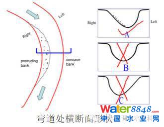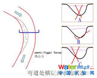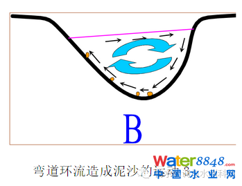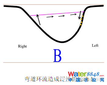 (二)彎道環(huán)流,清水流向凹岸,濁水流向凸岸