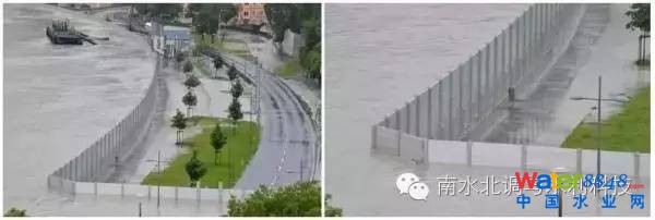 一旦上游來(lái)水時(shí)增大,有洪災(zāi)風(fēng)險(xiǎn)時(shí),立即排掉橡膠壩中的水,還原河道斷面,讓來(lái)水奔流而下。而堵水墻是順河岸安裝在堤頂,相當(dāng)于加高了堤壩,抬高了擋水位,增加了抵御洪水的能力。