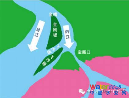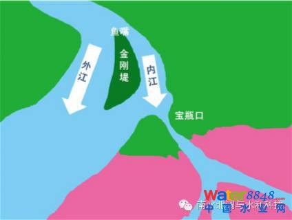 注:修建寶瓶口的目的主要是想將岷江江水分流部分進(jìn)入成都平原,防洪減旱。