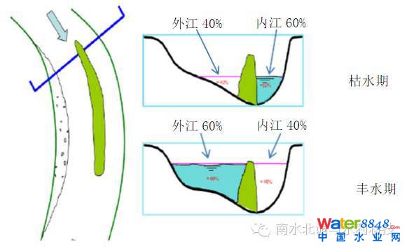 (枯水期內(nèi)江六成,外江四成,進(jìn)行灌溉;豐水期內(nèi)江四成,外江六成,避免洪災(zāi))