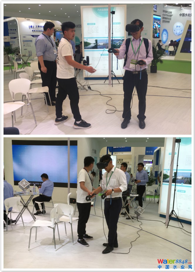 國禎環(huán)保管網(wǎng)事業(yè)部別出心裁,在展臺中部為觀眾準(zhǔn)備了一場VR盛宴。通過佩戴VR眼鏡、操作智能手柄,大家可以“深入地下”,身臨其境地體驗到管網(wǎng)下井作業(yè)的規(guī)范流程,引得觀眾駐足體驗,樂在其中。