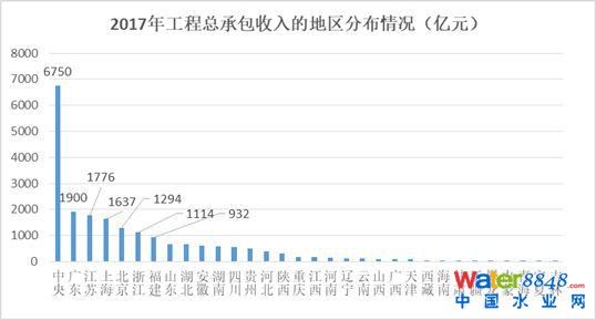 除國務(wù)院有關(guān)部門所屬企業(yè)和國資委隸屬企業(yè)外,工程總承包市場主要分布在廣東、江蘇、上海、北京、浙江等省市,2017年這些省份的工程總承包收入分別實現(xiàn)1900億、1776億、1637億、1294億、1114億,江蘇、廣東、浙江也是固定資產(chǎn)投資的大省,2017年社會固定資產(chǎn)投資分別為53000億、37404億、31136億,分別在全國省市中排名第二、第四和第九位。