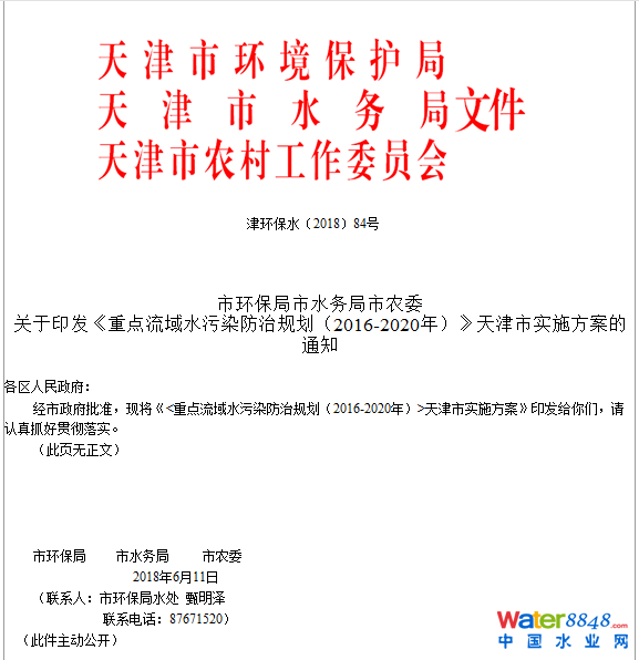 近日,《〈重點(diǎn)流域水污染防治規(guī)劃(2016-2020年)〉天津市實(shí)施方案》印發(fā),全文如下: