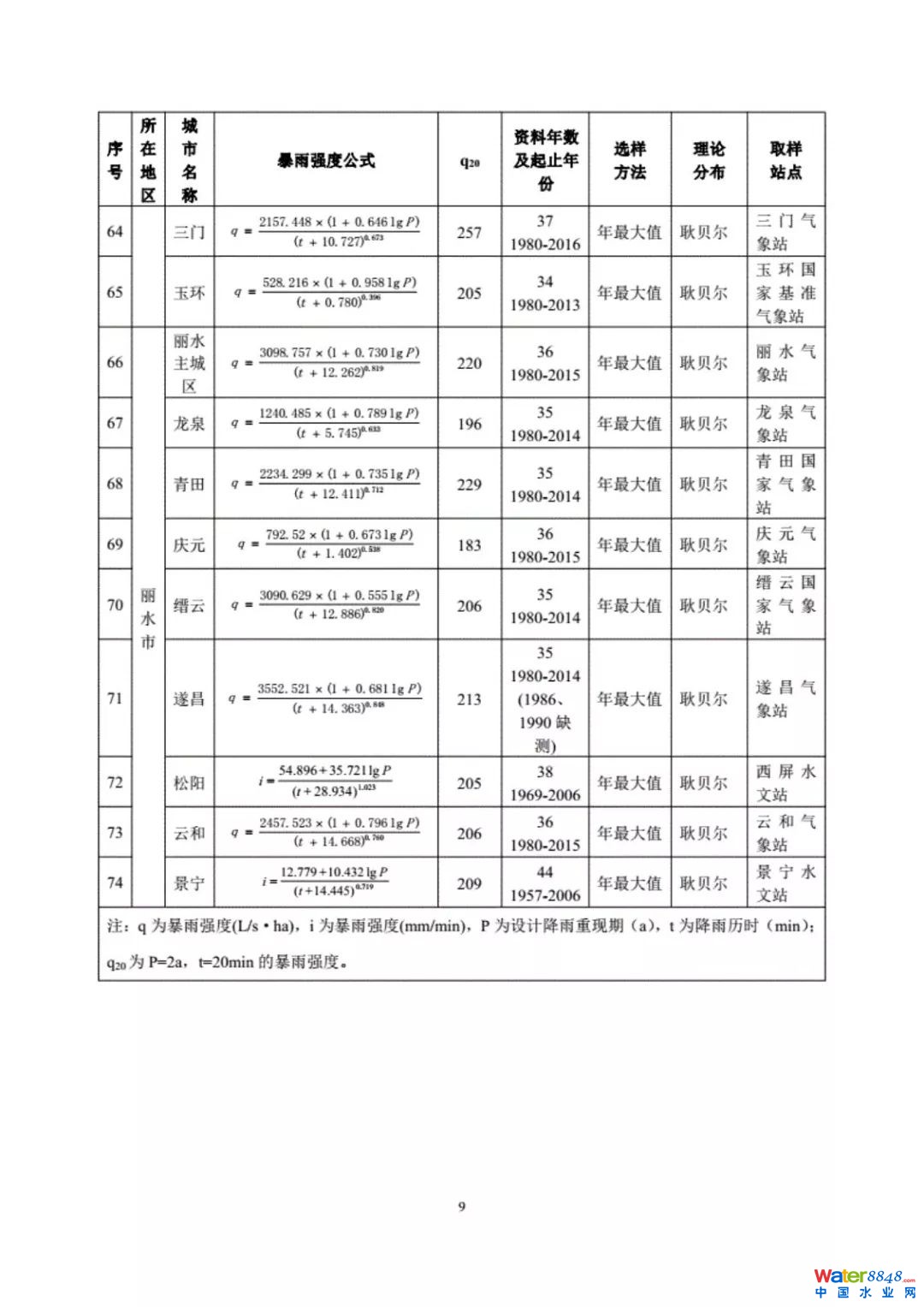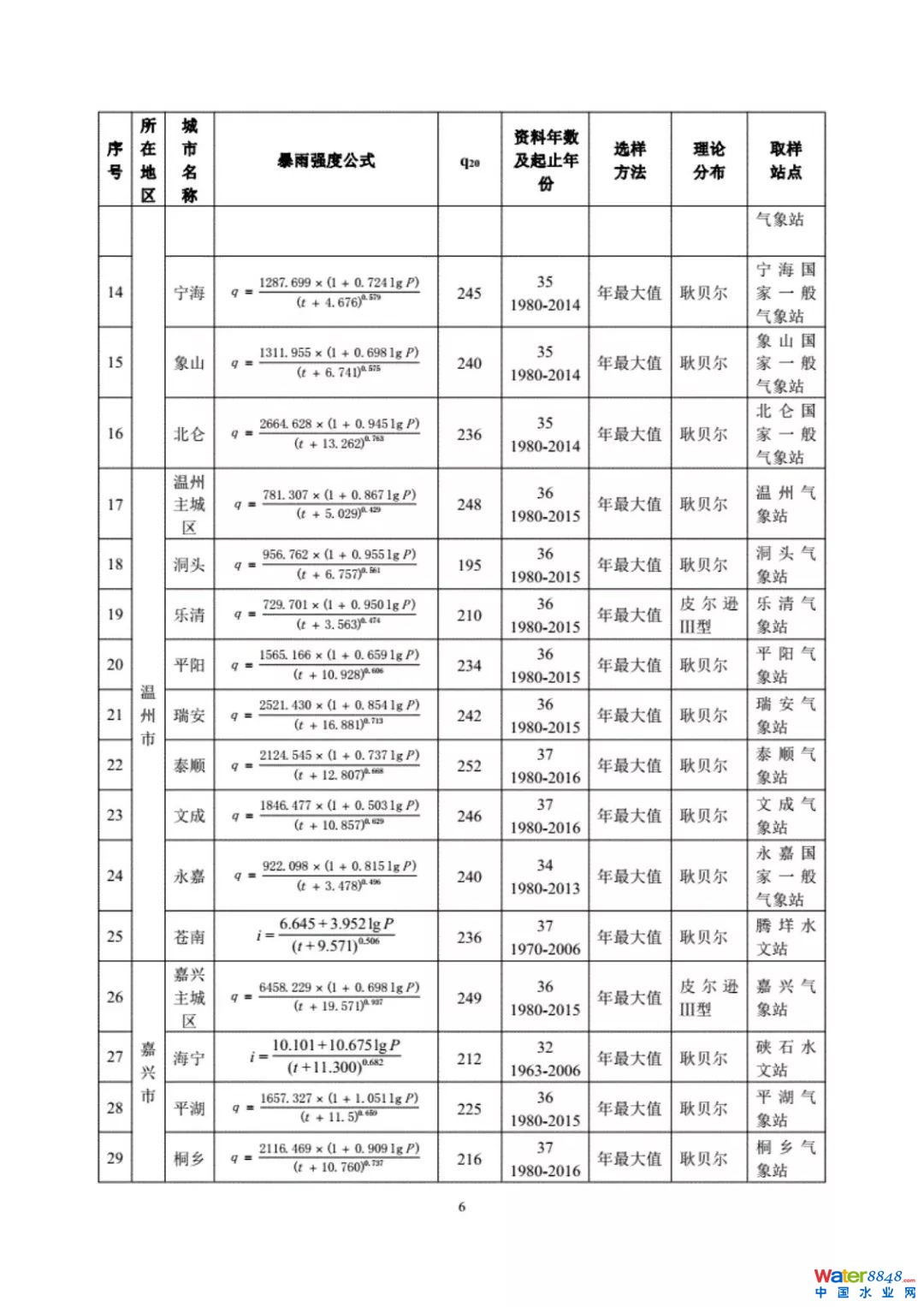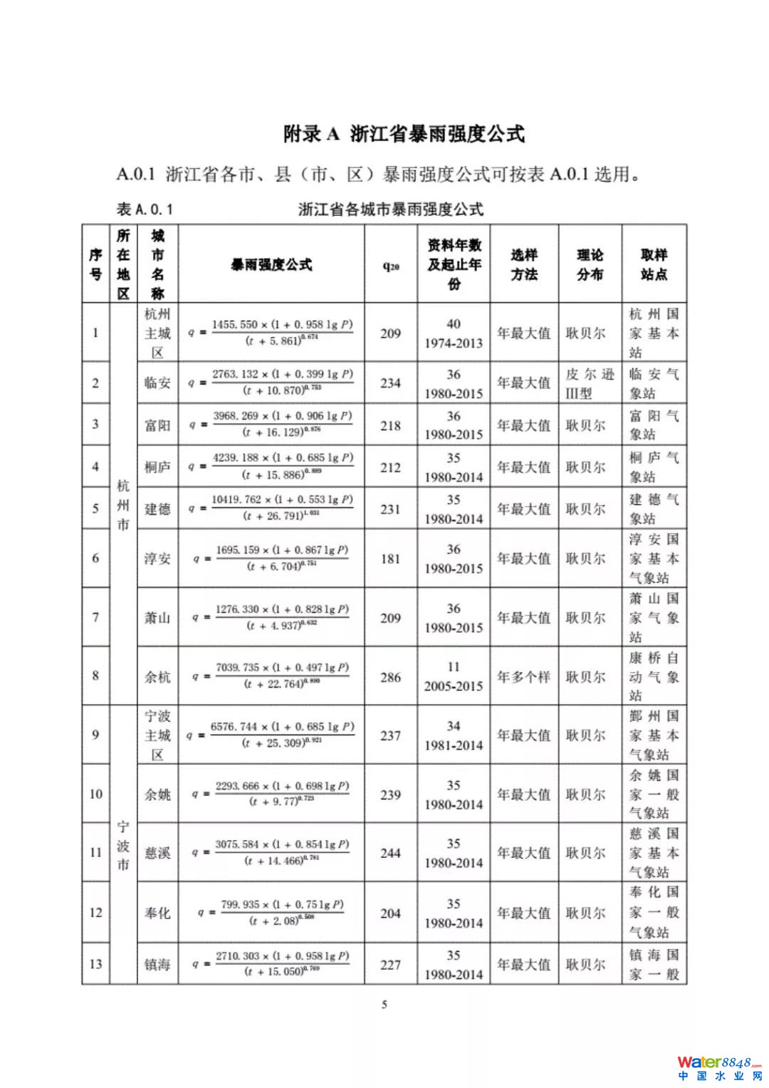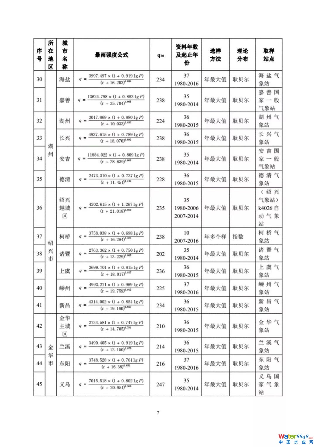 浙江省發(fā)布全省所有市縣暴雨強度公式!