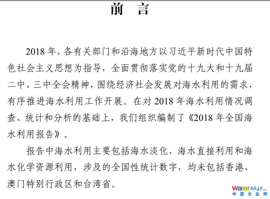 《2018年全國(guó)海水利用報(bào)告》由自然資源部海洋戰(zhàn)略規(guī)劃與經(jīng)濟(jì)司組織編制,旨在進(jìn)一步推動(dòng)海水利用產(chǎn)業(yè)發(fā)展。