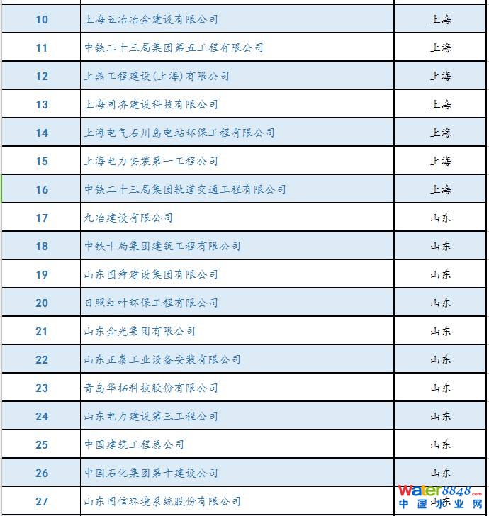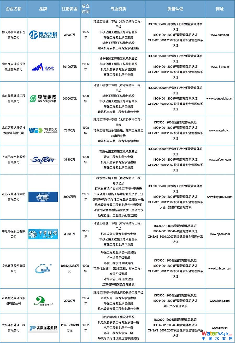 1.中國環(huán)保工程承包單位TOP10(排名不分先后)
