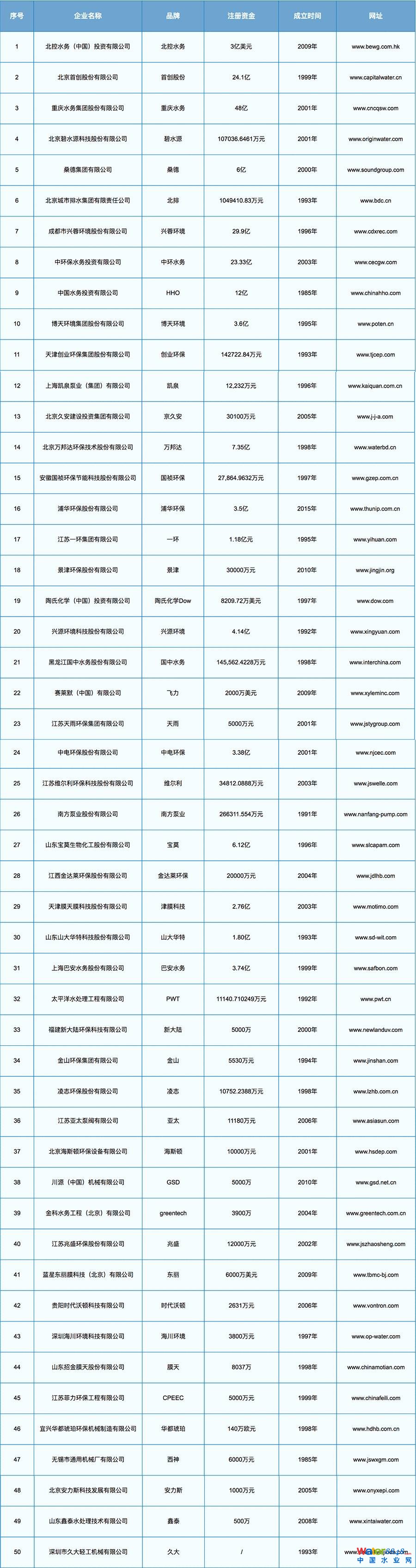 2.中國水處理企業(yè)TOP50(排名不分先后)