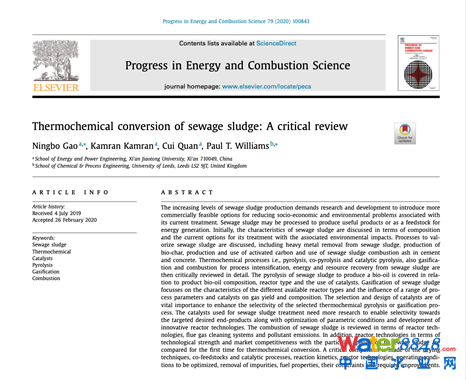 西安交通大學科研人員在污泥熱化學轉(zhuǎn)化方面發(fā)表重要綜述 |