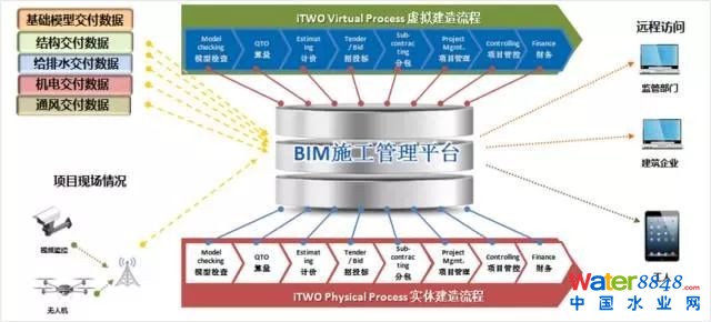 為保證模型信息的傳遞性與共享性,真正實(shí)現(xiàn)BIM全流程應(yīng)用價(jià)值,中冶南方定制開發(fā)綜合管廊BIM5D施工管理平臺(tái)。將設(shè)計(jì)階段各專業(yè)交付數(shù)據(jù)導(dǎo)入BIM 5D平臺(tái),通過模型分析與拆分、計(jì)量計(jì)價(jià)施工管理,進(jìn)行虛擬施工,預(yù)演現(xiàn)場(chǎng)施工作業(yè)。并與監(jiān)控、無人機(jī)等設(shè)備拍攝的項(xiàng)目現(xiàn)場(chǎng)情況進(jìn)行對(duì)比,智能管理管廊施工,隨時(shí)發(fā)現(xiàn)并及時(shí)解決施工過程中存在的問題,保證施工進(jìn)度,控制施工成本。同時(shí),監(jiān)管部門、建筑企業(yè)、工人等項(xiàng)目參與各方,可利用手持端,對(duì)云平臺(tái)數(shù)據(jù)進(jìn)行遠(yuǎn)程查詢與訪問。