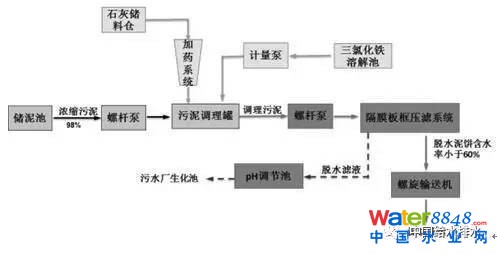 圖3 石灰鐵鹽調(diào)理技術(shù)工藝流程