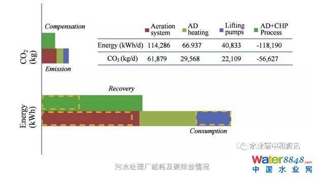實(shí)踐中,碳中和常常被等同為能量中和(實(shí)質(zhì)不同)。關(guān)于低能耗處理和污水能源回收的研究與發(fā)展具有廣泛的研究與應(yīng)用基礎(chǔ),包括從進(jìn)水碳與剩余污泥中回收有機(jī)物化學(xué)能,有機(jī)質(zhì)共消化,熱量回收和生物質(zhì)焚燒等等。然而,除了能量,處理過程自身(例如,N2O 和CH4逸散)和資源消耗(如,化學(xué)藥劑和混凝劑)也會(huì)產(chǎn)生溫室氣體排放。因此,必須針對(duì)能量消耗、能量回收和其它直接與間接溫室氣體排放制定一攬子解決方案,將污水處理廠建為成碳中和運(yùn)行實(shí)體。