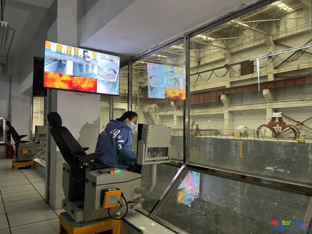 順著集中控制室再往樓上走,就是廠區(qū)的全封閉垃圾吊控制室。在控制室內(nèi),工作人員正在操作吊臂起運(yùn)垃圾至給料斗,透過一面巨大的玻璃,垃圾儲坑一覽無余。雖然控制室離垃圾儲坑最近,但由于垃圾儲坑采取了嚴(yán)格的密封處理和負(fù)壓運(yùn)行,控制室及周圍沒有一點(diǎn)異味。