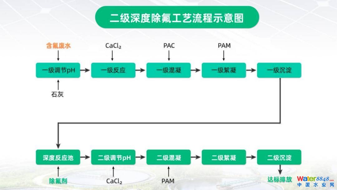 很多企業(yè)對(duì)光伏廢水的處理方式是通過加入CaO、CaCl2和PAM,使廢水中的氟化物與CaO和CaCl2中的鈣離子生成CaF2沉淀,以達(dá)到去除廢水中氟化物的目的。但這也附帶產(chǎn)生一系列問題,如廢水處理后COD、電導(dǎo)率和硬度較處理前更高,處理后的水質(zhì)更為復(fù)雜,氟化物排放不達(dá)標(biāo)……