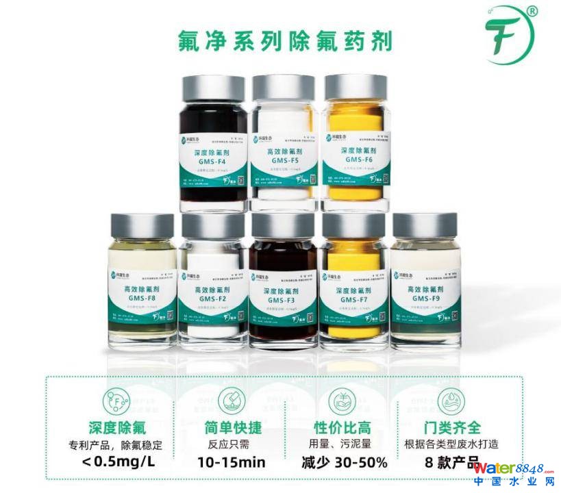 聚焦新能源、光伏等涉氟行業(yè)廢水深度治理問題,環(huán)瑞生態(tài)積極探索“低碳治理”新思路,成功自主研發(fā)出8款深度除氟藥劑。其中F3 、F5 、F7產(chǎn)品針對(duì)光伏行業(yè)痛點(diǎn),能有效解決含氟廢水問題。使用環(huán)瑞除氟劑,不會(huì)引起氨氮、COD等其它水質(zhì)指標(biāo)的升高,可代替樹脂、吸附劑,大大縮減占地面積和投資成本,并且最低可以將氟離子穩(wěn)定降至0.5mg/L以下。