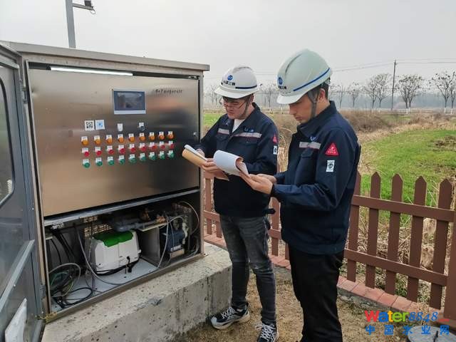 “據(jù)現(xiàn)場查看,這個(gè)問題屬于電源故障,現(xiàn)已解決。”在園農(nóng)村一體化處理設(shè)備站點(diǎn),長江環(huán)保集團(tuán)長三角分公司六合項(xiàng)目現(xiàn)場工作人員陳正雷與同事根據(jù)手機(jī)APP發(fā)送的警報(bào)信息,來到現(xiàn)場查看情況。