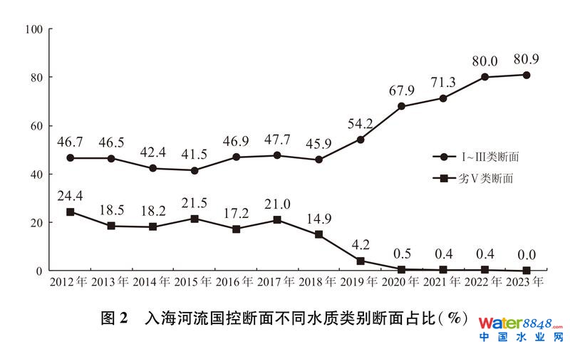 抓好入海河流污染防治。入海河流是陸源污染物輸入海洋的最重要途徑。中國(guó)積極提升城鎮(zhèn)污水處理質(zhì)效,建設(shè)改造雨污分流管網(wǎng),加強(qiáng)污水處理行業(yè)監(jiān)管,降低城鎮(zhèn)生產(chǎn)生活污水對(duì)入海河流水質(zhì)影響。2012年以來(lái),沿海地區(qū)污水處理基礎(chǔ)設(shè)施建設(shè)顯著提速,地級(jí)以上城市污水處理廠基本完成一級(jí)A提標(biāo)改造。開展農(nóng)村環(huán)境整治,“十四五”以來(lái),沿海省份新增完成1.7萬(wàn)個(gè)行政村環(huán)境綜合整治,編制完成170個(gè)畜牧大縣畜禽養(yǎng)殖污染防治規(guī)劃,農(nóng)村生活污水治理率超過(guò)45%,大幅降低農(nóng)業(yè)農(nóng)村污水排放。著力破解流域氮排放過(guò)量的近岸海域水質(zhì)污染和富營(yíng)養(yǎng)化問(wèn)題,建立沿海、流域、海域協(xié)同一體的綜合治理體系,探索將總氮控制范圍向入海河流上游拓展,推動(dòng)入海河流實(shí)施“一河一策”總氮治理。2012—2017年中國(guó)入海河流國(guó)控?cái)嗝嫠|(zhì)整體保持穩(wěn)定并有所好轉(zhuǎn),2018年以后水質(zhì)整體大幅好轉(zhuǎn)。目前,入海河流國(guó)控?cái)嗝嫠|(zhì)優(yōu)良(Ⅰ~Ⅲ類)斷面數(shù)量約占整體的五分之四左右,喪失使用功能(劣Ⅴ類)斷面基本消除。
