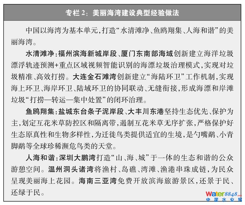 多措并舉建設(shè)美麗海灣。制定美麗海灣建設(shè)的基本標(biāo)準(zhǔn),以海灣環(huán)境質(zhì)量良好、海洋生態(tài)系統(tǒng)健康、人海關(guān)系和諧共生為導(dǎo)向,設(shè)置五類指標(biāo),指導(dǎo)各地開展美麗海灣建設(shè),鼓勵(lì)因地制宜增設(shè)特色指標(biāo)。建立美麗海灣建設(shè)管理平臺(tái),利用現(xiàn)場(chǎng)調(diào)查和遙感監(jiān)測(cè)等手段,跟蹤評(píng)估進(jìn)展,推動(dòng)實(shí)現(xiàn)美麗海灣建設(shè)情況智慧監(jiān)管,督促推動(dòng)各級(jí)政府因地制宜開展海灣綜合治理,落實(shí)建設(shè)任務(wù)。建立多元投融資機(jī)制,強(qiáng)化政府引導(dǎo),鼓勵(lì)經(jīng)營(yíng)主體、社會(huì)資本參與美麗海灣建設(shè)。綜合運(yùn)用財(cái)政投入、專項(xiàng)債、生態(tài)環(huán)境導(dǎo)向開發(fā)(EOD)項(xiàng)目等財(cái)政金融手段,加快推進(jìn)美麗海灣建設(shè)項(xiàng)目落地。加強(qiáng)美麗海灣建設(shè)示范引領(lǐng),鼓勵(lì)美麗海灣建設(shè)制度機(jī)制和關(guān)鍵技術(shù)創(chuàng)新,開展優(yōu)秀案例遴選,推廣示范經(jīng)驗(yàn)?zāi)J,引領(lǐng)提升美麗海灣建設(shè)總體水平。目前,已遴選兩批20個(gè)國(guó)家級(jí)美麗海灣優(yōu)秀案例。