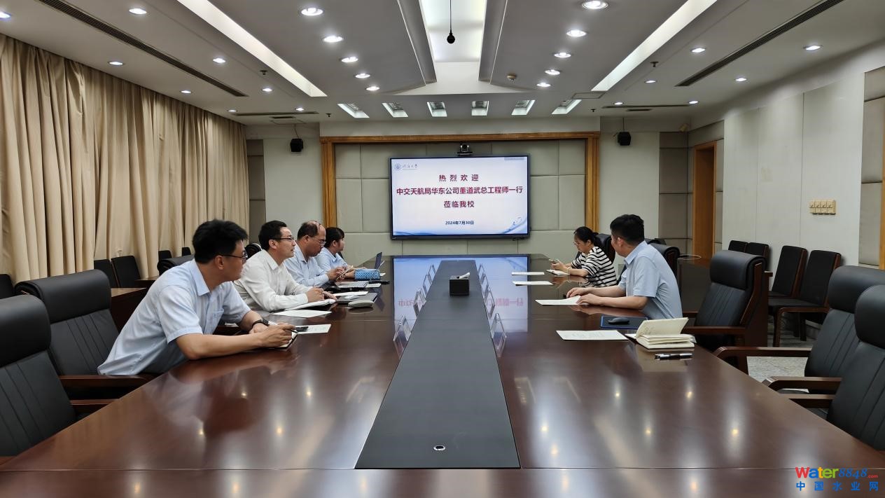 近日,中交天航局華東公司董道武總工程師一行來河海大學(xué)對接交流?萍继幪庨L沈德建主持會議。